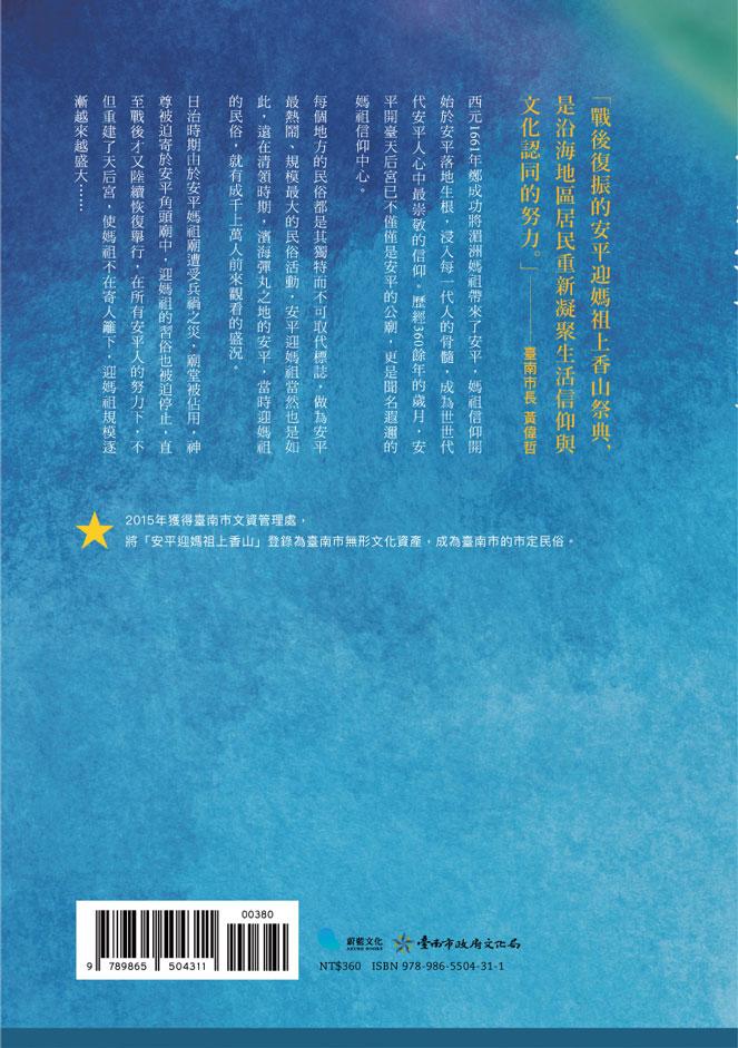 民俗是人類最樸實的生活文化,隨著生活方式的改變,「安平迎媽祖上香山」這個民俗也有所變化,不變的是安平媽返鄉省親謁祖,所體現的孝道精神。在面對不可擋的改變中,以文字、影像記錄這過去、現在所知的情況,一直是我努力的方向,在2014年時,便以〈上香山-安平迎媽祖〉為題,於《臺南文獻》第5期中,發表一篇介紹安平迎媽祖文章,讓更多人知道並且能夠來認識安平迎媽祖。此次非常感謝臺南市文化資產管理處與黃文博校長邀約撰寫《安平迎媽祖上香山》一書,也要感謝安平開臺天后宮主委盧友禮、總幹事林國明、常務監察委員黃鏡月,還有已故前安平觀音亭主委吳高明月,於我田調期間的幫忙協助,謹在此向大家致上最誠摯的謝意。