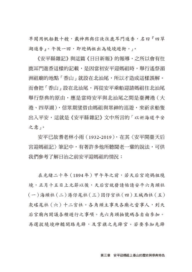 第三章 安平迎媽祖上香山的歷史與祭典特色