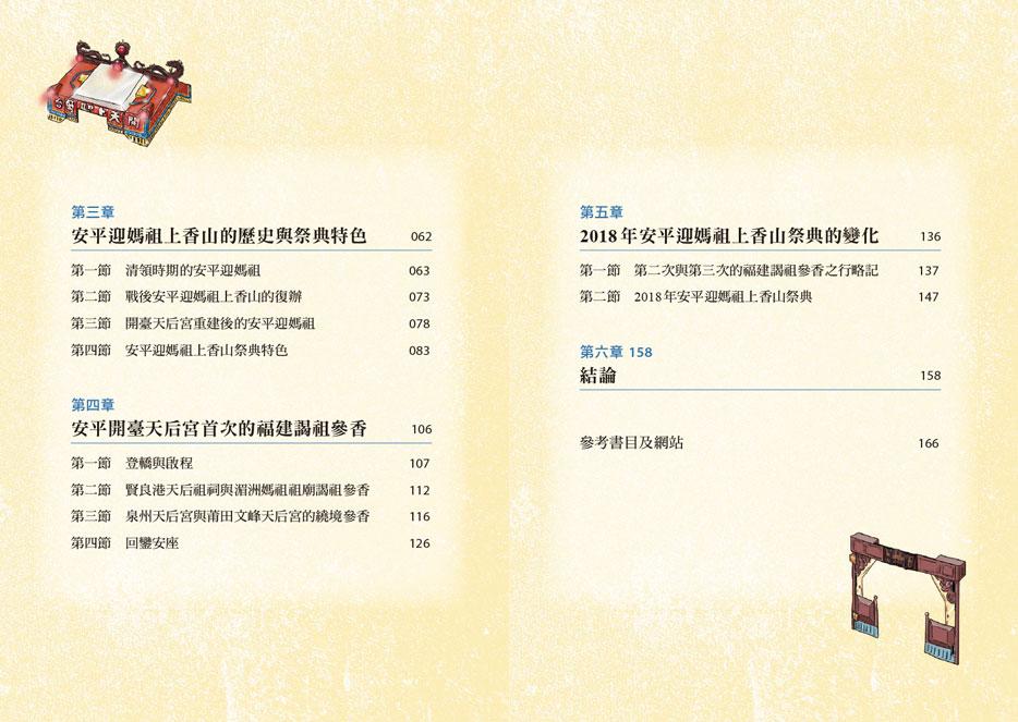 本書主稿完成於2019年10月,當時文稿主要是紀錄到2018年的安平迎媽祖,待臺南市文化資產管理處通知本書即將印刷出版時,安平天后宮又已於2022年4月,舉行了一次迎媽祖活動,故2022年6月時,筆者又針對本書做了一次文稿增修,呈現祭典最新近況,期望更多人了解安平媽祖的信仰文化,並達到宣揚推廣《安平迎媽祖上香山》這項文化資產之目的。