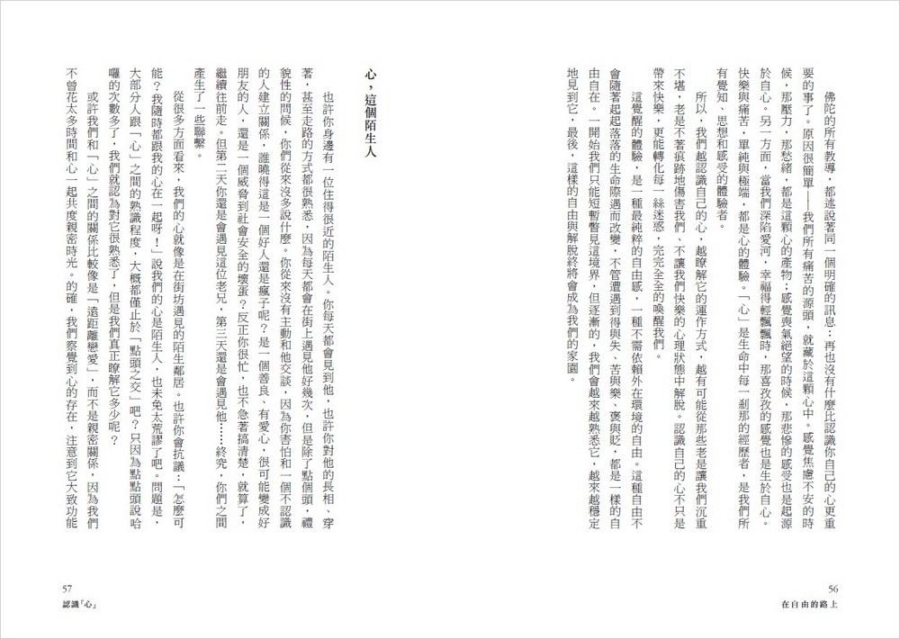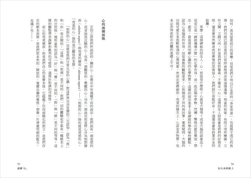 竹慶本樂仁波切的這本《在自由的路上》,引領讀者能從佛陀教法的心靈科學,來解決面對生活裡的種種苦難,從而使心受苦的謬誤牢籠裡得到解脫。
