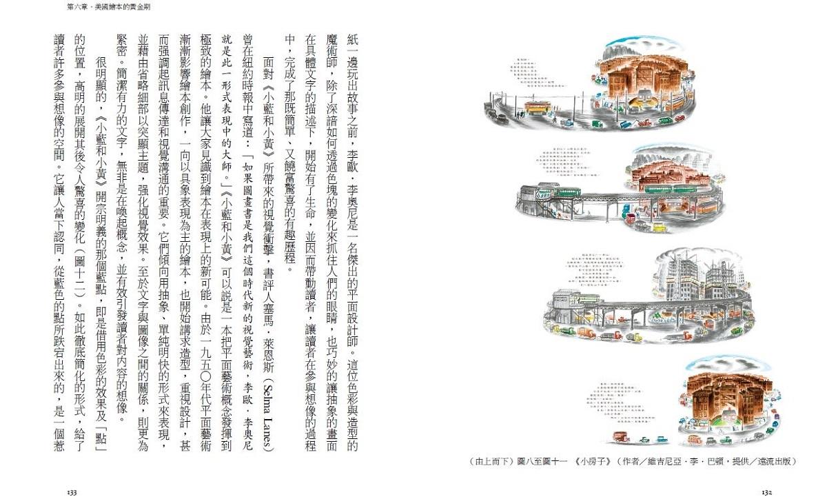 ★繪本歷史X繪本議題,兩大脈絡帶你開啟繪本之眼:本書脈絡清楚,縱軸為繪本發展歷史,依序介紹重量級作品與作家;橫軸則精選繪本重要議題,如繪本裡的語言、圖文關係、兒童觀等,兩條軸線細密交織,展頁之間為你「開眼」,深度看見並體會繪本之美。
