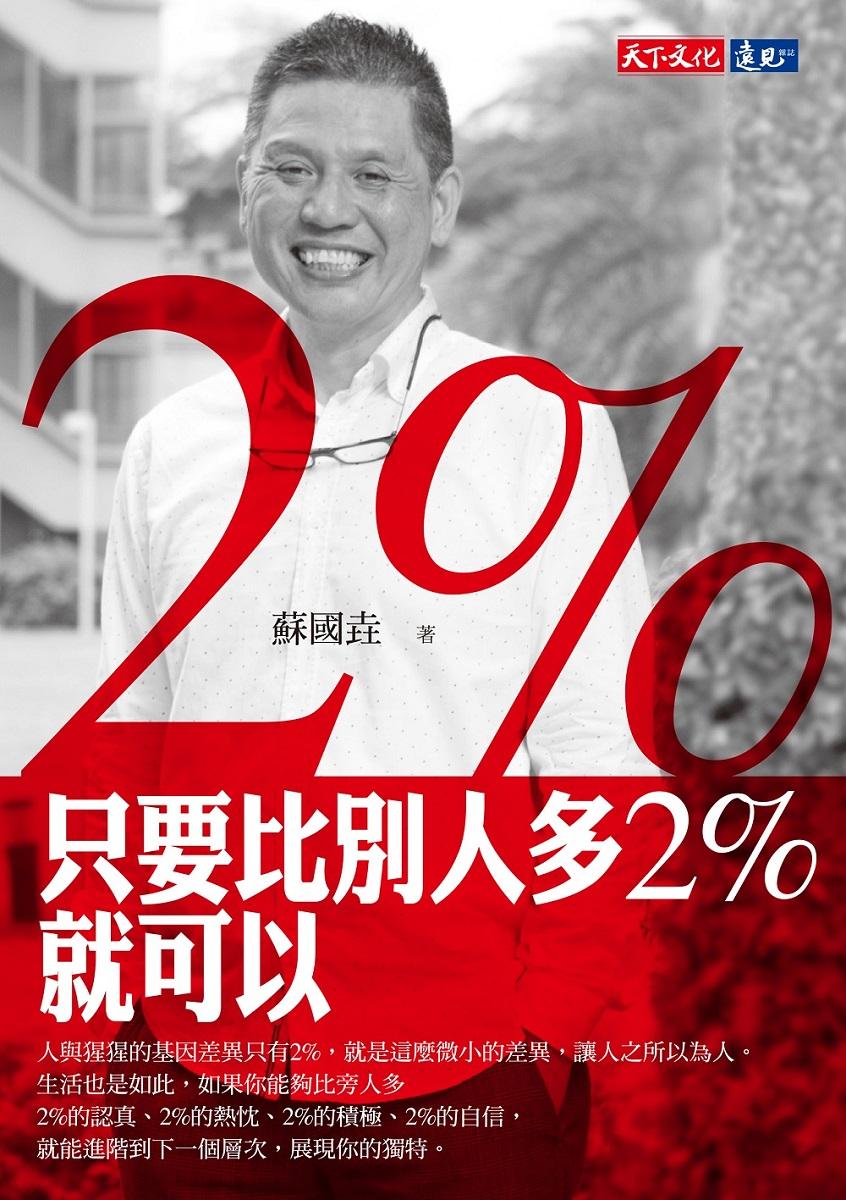 《只要比別人多2%就可以》是《位位出冠軍》的進階版,也是受邀去學校及公司行號最常用的主題,天下文化告知要改版,要我寫序。拿起書再翻一次,裡面的小巴已經在新加坡經營一家餐廳了,Eric也去大陸擔任集團中的一家旅館的客務部副理,他們都繼續在自己熱愛的產業中進步,連鈴木一朗已破了美日棒盟通算的4257安打的紀錄,學生及畢業生也都可以告訴我要先定To Be再做To Do,也戲謔地開我的玩笑說他去我禁止他們去的藥妝店買東西⋯⋯,但在不少的校園演講中,還是感受到台生與陸生強烈的差異,台生通常呆滯無趣,陸生則帶著充滿求知上進的眼神望著我尋求解惑;在企業內演講,舉例3×5=15、3×6=18及3×7=24的例子,幾乎所有人還是會指出3×7=24是錯的,就知道這本書應該值得再版,讓更多的人分享。