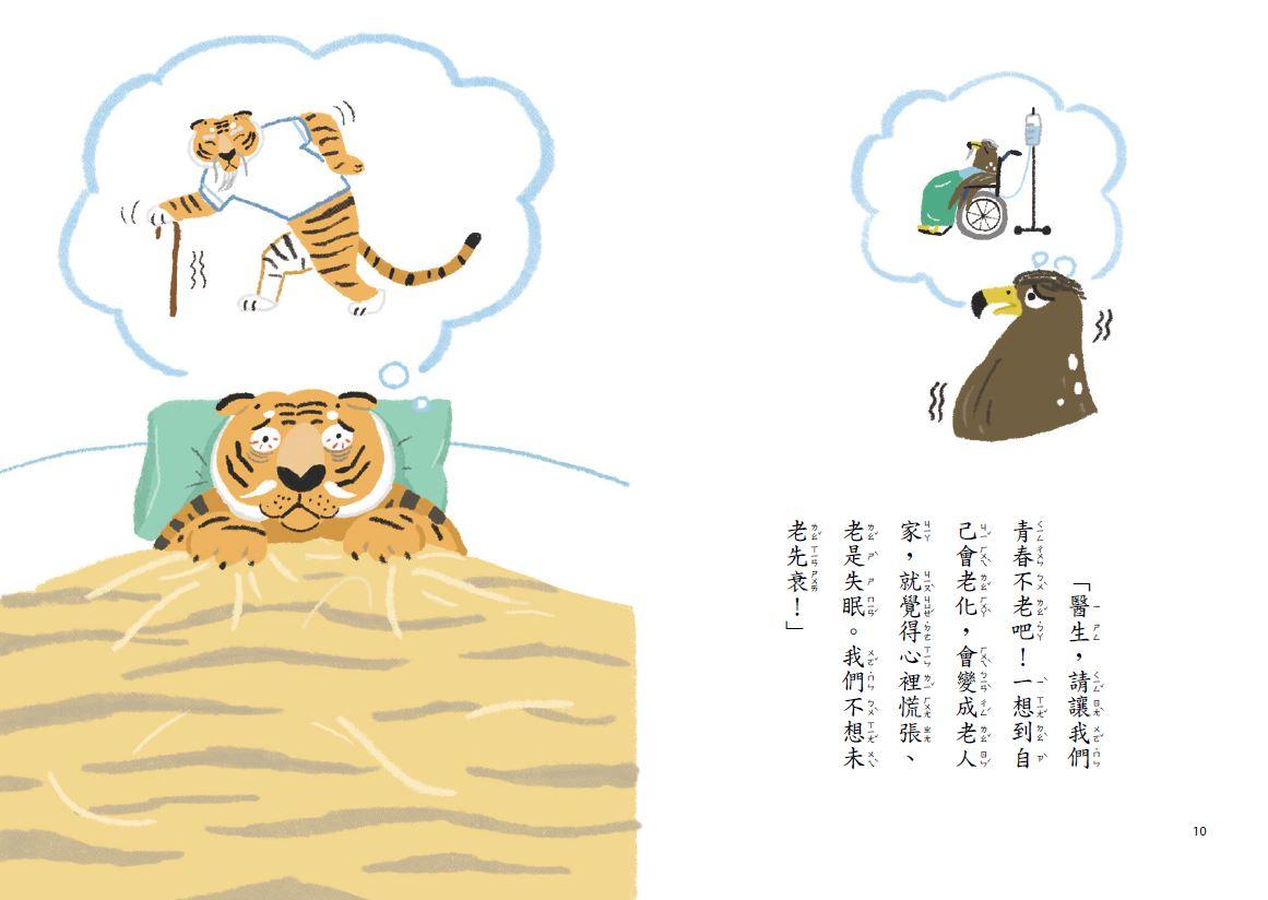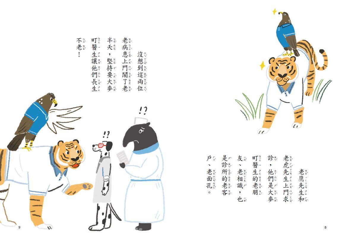 其他還有病人長頸鹿、變色龍、母雞、老鷹老虎和黃鶯小姐等,溫暖的大麥町醫生會又會用哪些充滿創意的處方箋治療他們呢?就不再這兒揭曉,快和孩子翻開,一起輕鬆笑哈哈,享受創意衝撞頭腦的滋味吧!