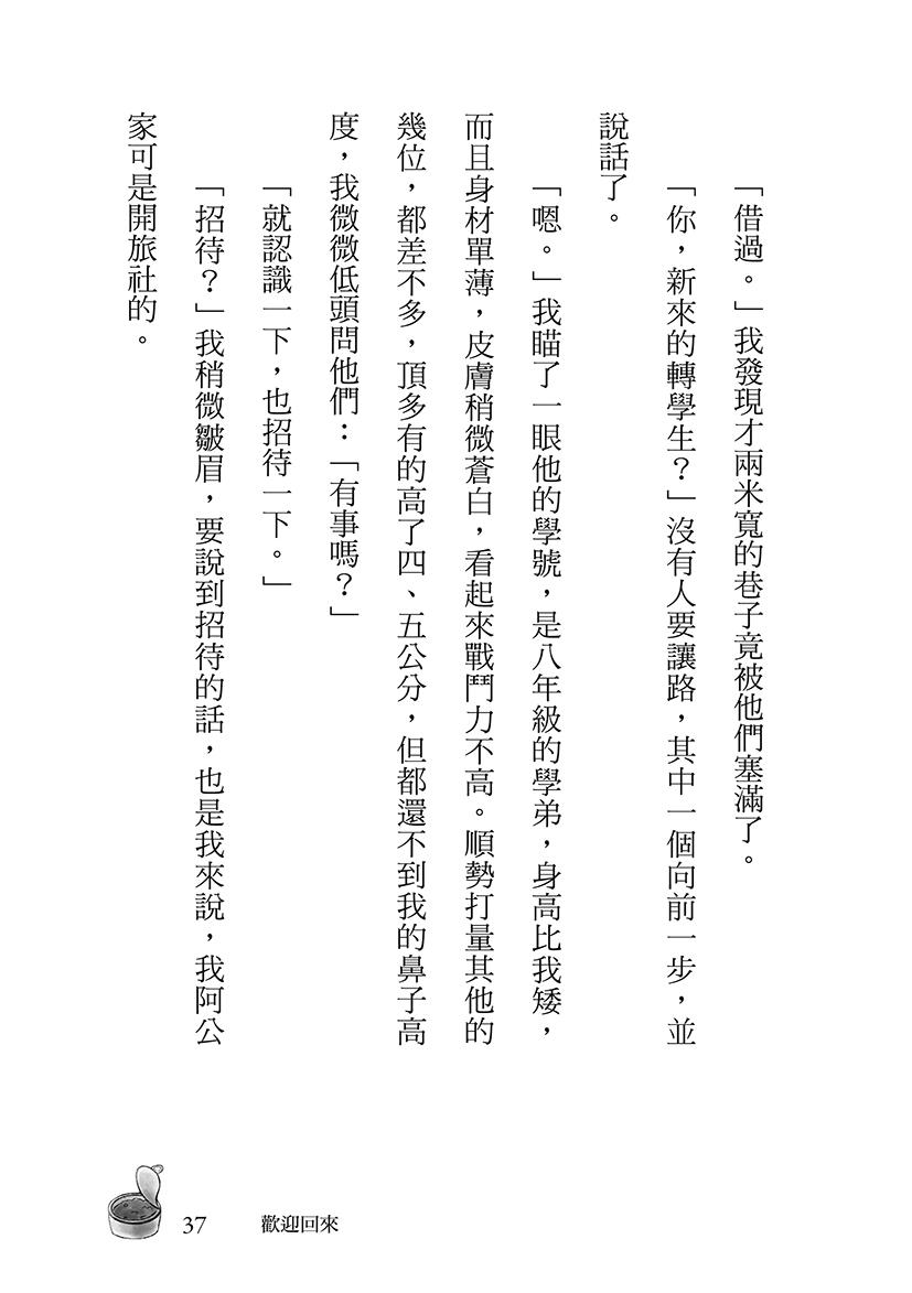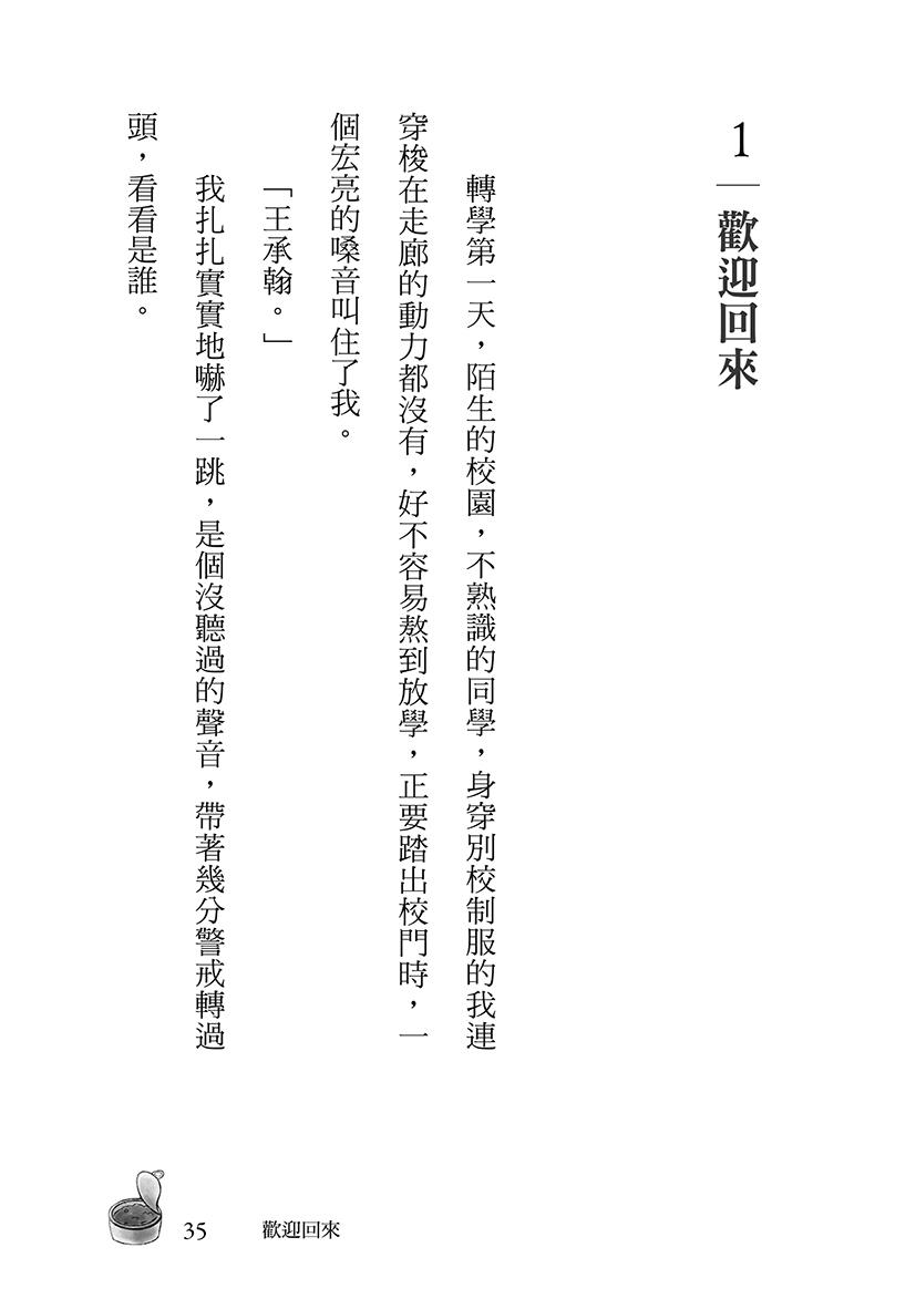 看起來是導護老師,只是怎麼知道我的名字。算了,不重要,我隨口應了聲表示聽到,但心裡卻忍不住嘀咕這轉學的時間點,真是莫名其妙,離畢業只剩下半學期,是怎樣?要叫我回鄉下跟阿公大眼瞪小眼,也等我國中畢業,搞得大家以為我被退學,拜託,那些沒常識的好學生和乖同學,什麼功過都沒有的我怎麼會被退學?