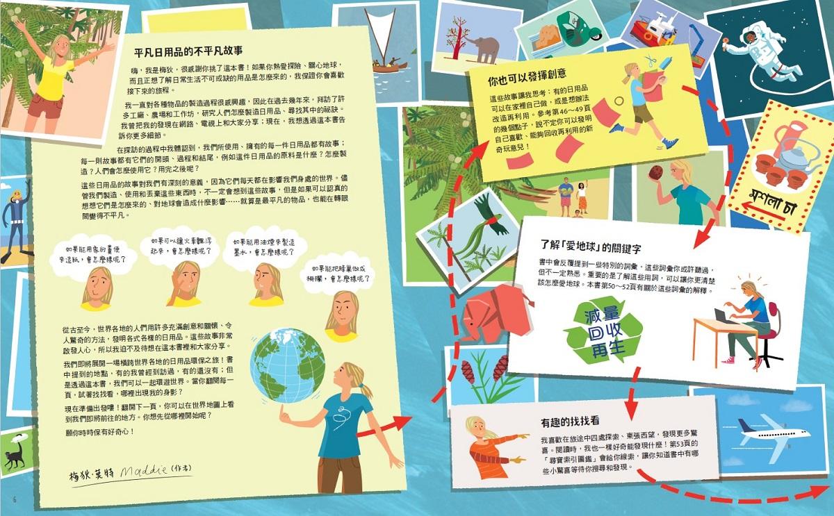 我們即將展開一場橫跨世界各地的日用品環保之旅!書中提到的地點,有的我曾經到訪過,有的還沒有;但是透過這本書,我們可以一起環遊世界。當你翻閱每一頁,試著找找看,哪裡出現我的身影?