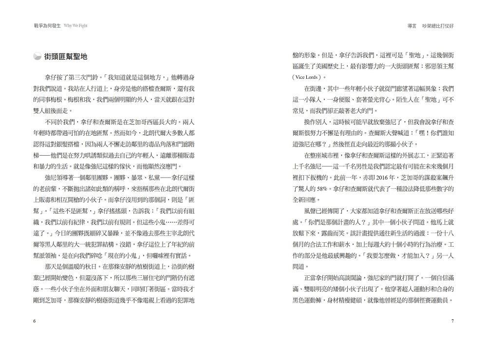布拉特曼從幫派械鬥、內戰的角度切入,再談到國家之間的戰爭,