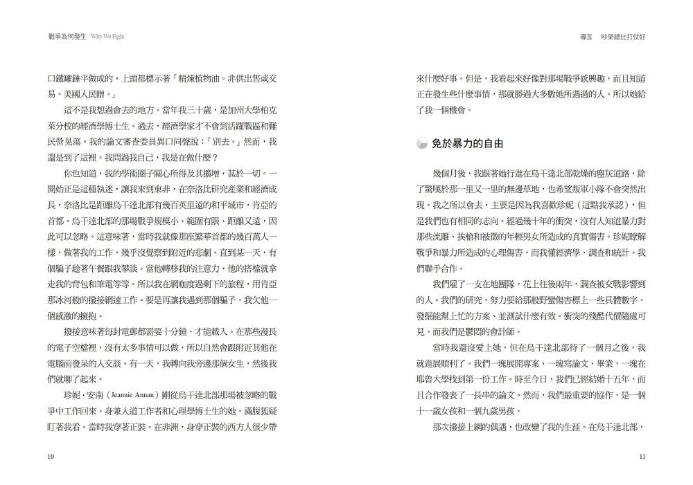 進入二十一世紀的第三個十年,人類仍然深陷致命衝突之中。布拉特曼避免了無用的二分法,既不聲稱暴力是人性的一部分,亦不宣稱人類幾乎已克服了戰爭傾向,而是解釋了人類社會如何利用許多不同的策略來化解衝突,以及為什麼這些努力有時候會失敗。—— 艾塞默魯(Daron Acemoglu),《國家為什麼會失敗》作者
