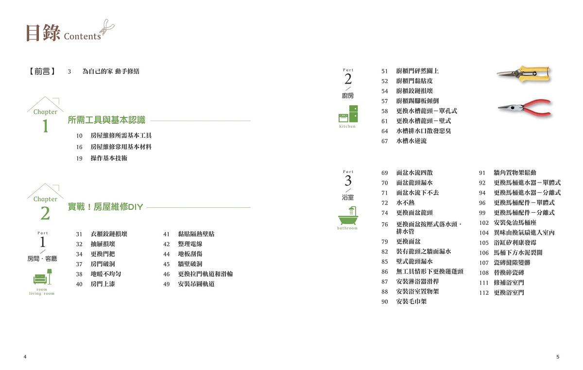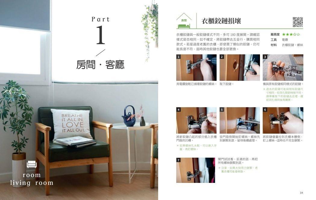 跟著這本書,細細瀏覽書中每一支影片、熟悉相關工具使用方法,房子裡五花八門的大小毛病,完全可以親自動手處理。