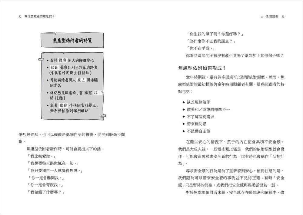 《為什麼難過的總是我?》開宗明義就是希望你多認識自己,並且提供了很好的地圖。作者莎拉.克羅斯比用鄰家大姊姊般的口吻,透過引人入勝的故事、深刻的問題和啟發性的練習,讓你更認識自己。富有敏銳和同理的語言,將沉重的情感和心理議題化繁為簡,並提供具體的解決方案和實踐指南。從字裡行間裡,你可以感受到作者滿滿的溫度,鼓勵你自我接納,並陪著你一起發展積極的自我價值感和自信心。