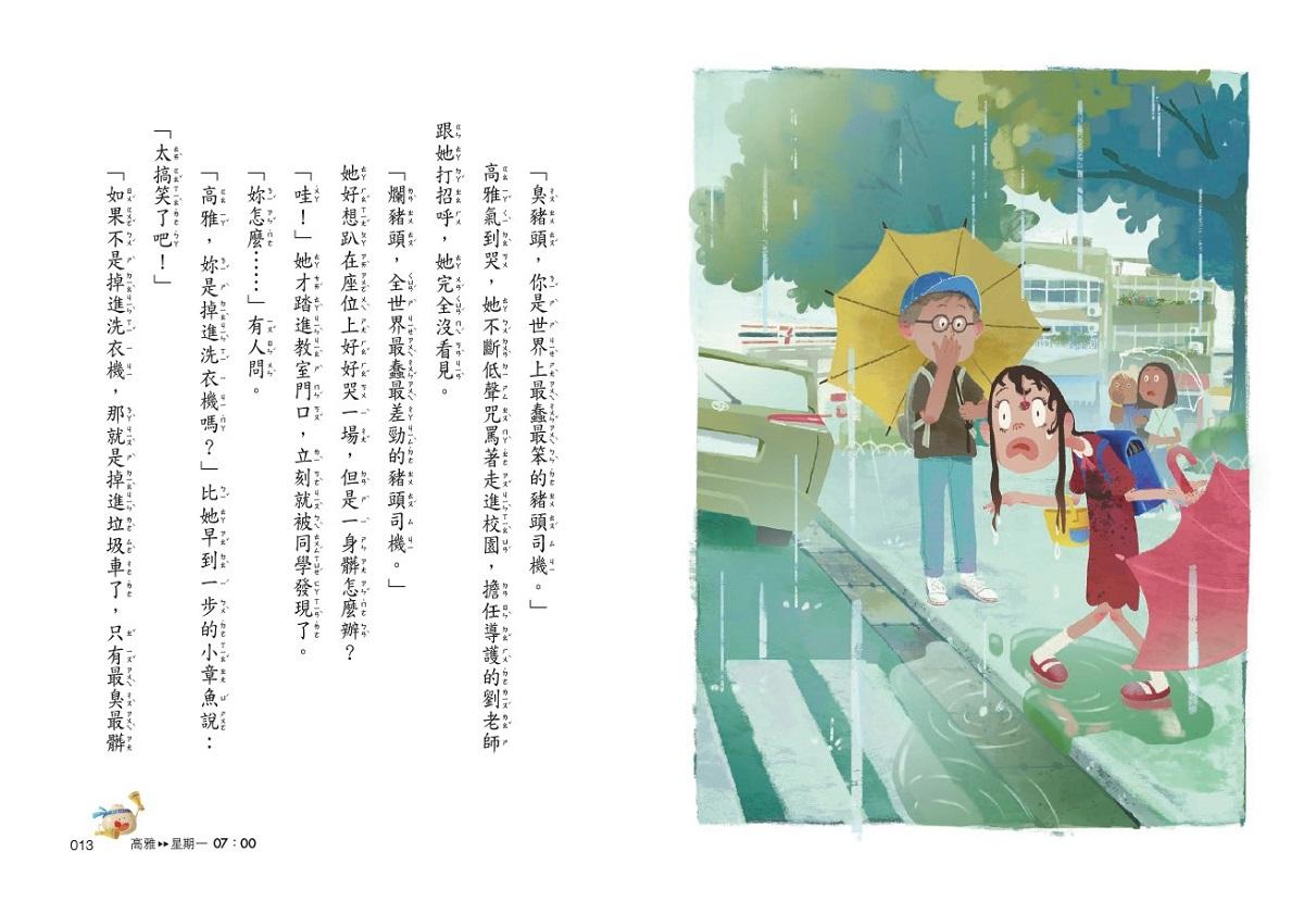 陳序撐著傘,走到校門口,遇到班上的小章魚。