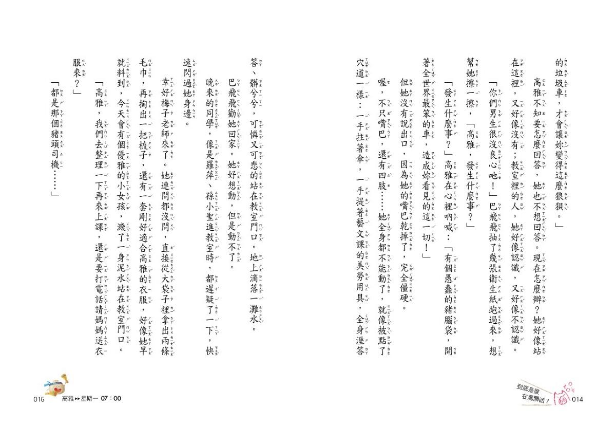 下課時間,一個孩子投訴,另一個委屈辯解,甚至找來各自的證人澄清,相信這種七嘴八舌的場景,當老師的一定不陌生。因此看到《到底是誰在罵髒話?》這本書時,老師的日常似乎栩栩如生的出現在眼前,尤其這些鬼靈精怪的小主角們在王文華老師的筆下似乎有了生命一般,趣味橫生的互動讓校園生活更添精采,相信每一位小讀者對於「梅子老師這一班」一定有似曾相識的驚呼:「我們班也是這樣啊!」而我彷彿也置入了梅子老師的靈魂,隨著故事情節犯起了職業病,準備在書中揪出誰在說髒話。