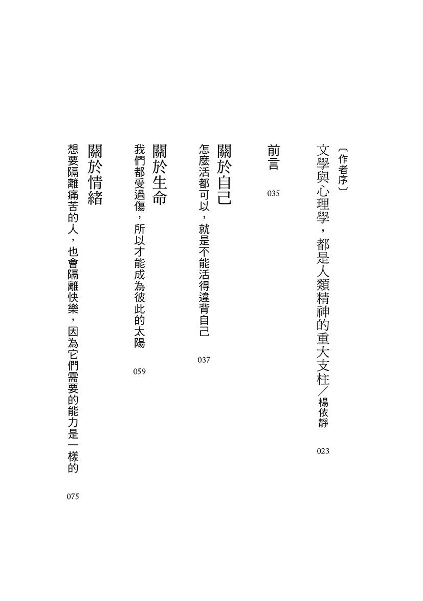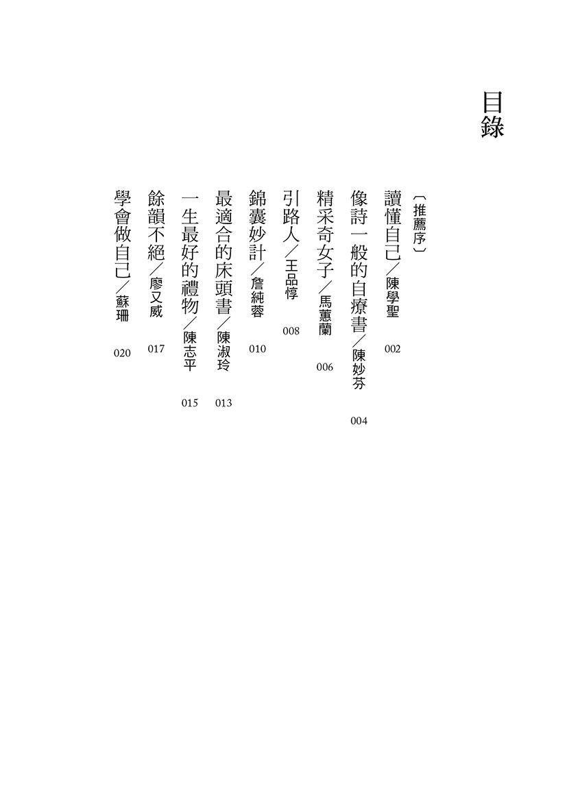 有機會讀到這本像詩一般的自療書,真是一種幸福,在依靜的文字裡,心理學、心理治療都這麼引人入勝,誠懇向你推薦這本人生非讀不可的好書。