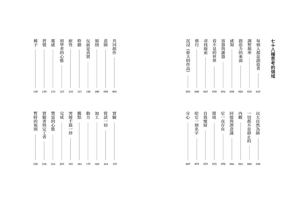 透過觀察過各種創作者的工作方式與困境,以及他們感知世界的方式之後,里克?魯賓歸納出一種找回原始、純真創作狀態的「修行」──他以輕巧、睿智的筆觸,談論一個人的聽覺、耐性、感知、潛意識、觀察力??是如何與一個人的創造力息息相關,而那樣的創造力,又會如何形塑一個人的人生。