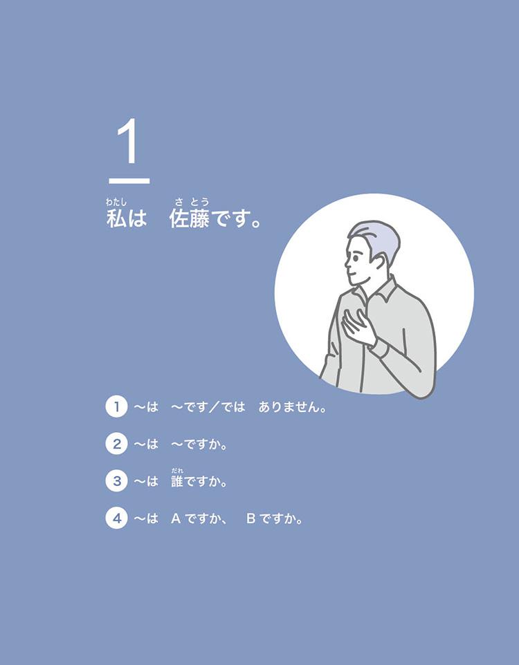 本系列分為「初級」、「進階」、「中級」三個等級,每個等級由4冊構成,每冊6課、每課4個句型。但不包含平假名、片假名等發音部分的指導。完成「初級1」至「初級4」課程,約莫等同於日本語能力試驗N5程度。