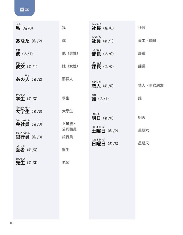 最後,期待使用本書的學生,能夠在輕鬆、無壓力的課堂環境上,全方位快樂學習,穩紮穩打地打好日語基礎!