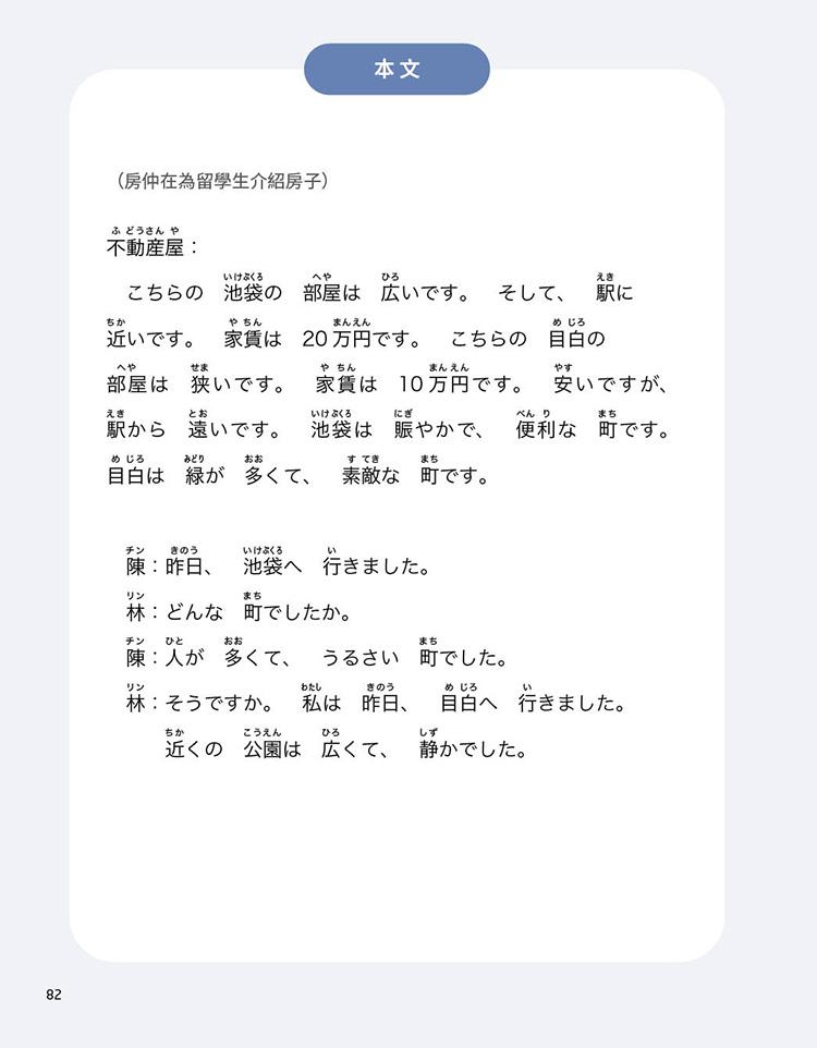此外,本教材還備有以中文編寫的教師手冊以及練習問題的解答可供選購,無論是新手老師還是第一次使用本教材的老師,都可以輕鬆地上手。「目白JFL教育研究會」亦會不定期製作輔助教材,於官網提供下載(網址詳見教材內頁)。