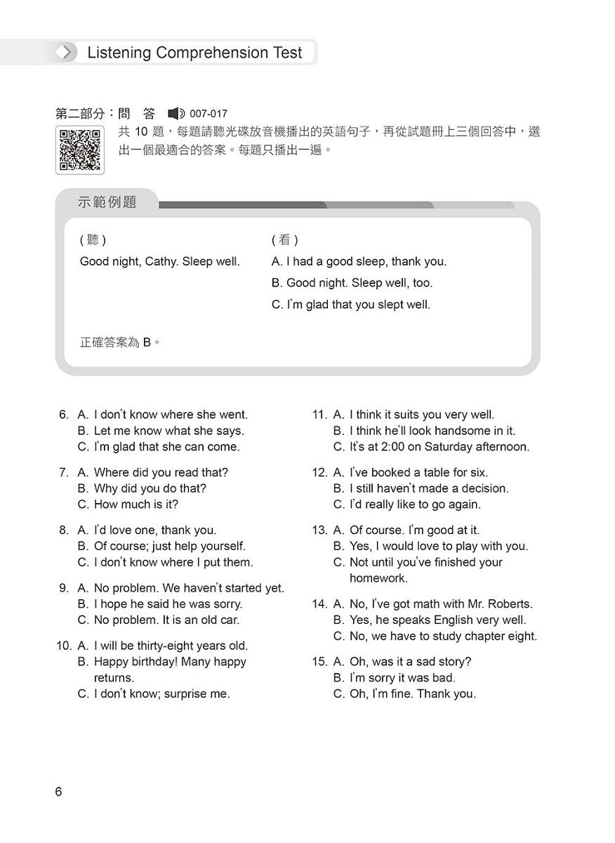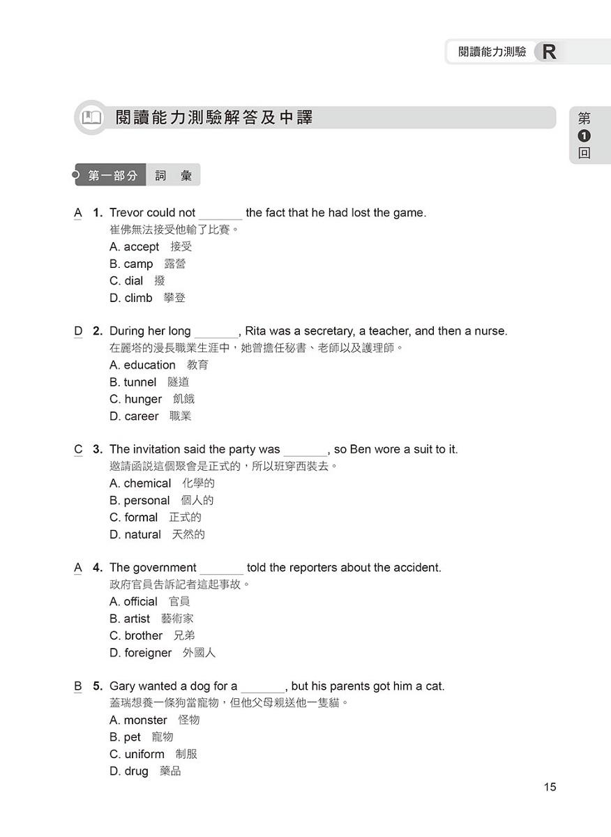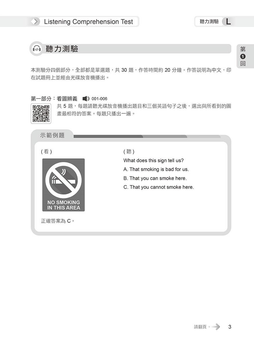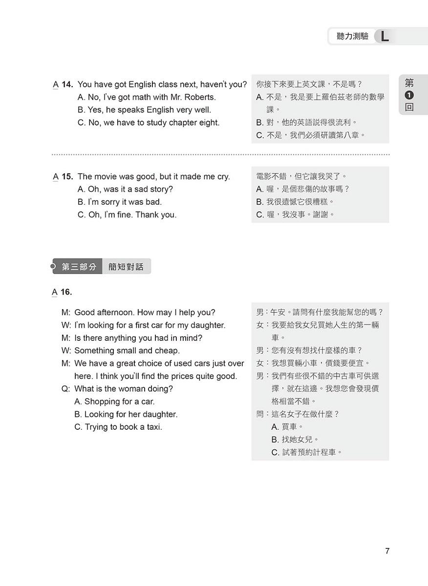 題目難度稍高於正式考題,聽力測驗速度較正式考題略快,並由專業外籍錄音老師錄製,讓你臨場應試無往不利!