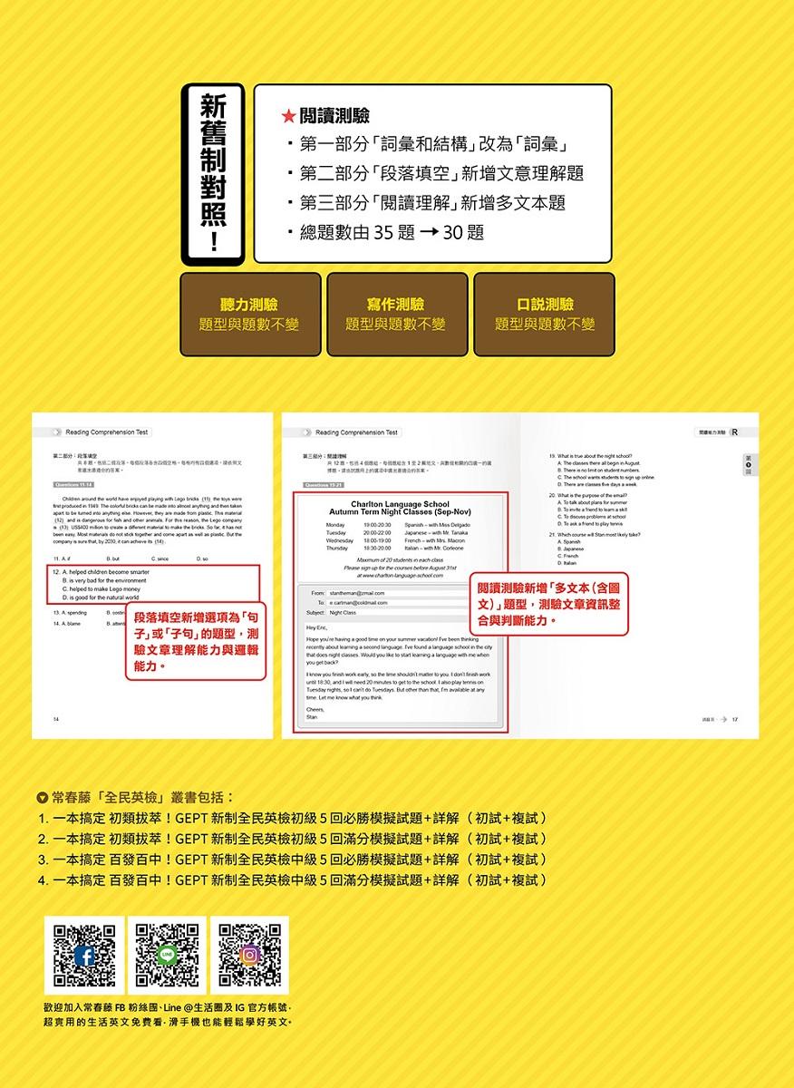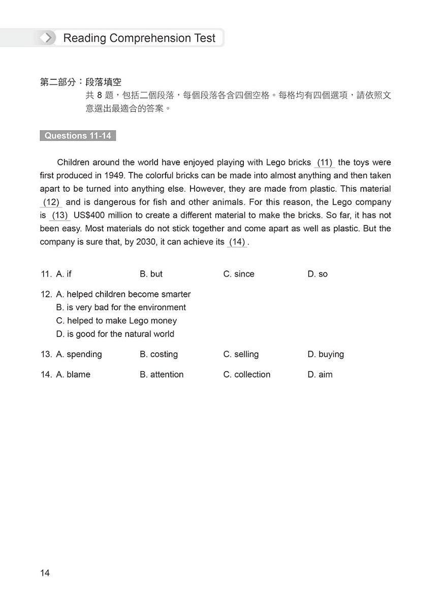 以最快的速度重磅推出2021年全民英檢新制題型之模擬試題。