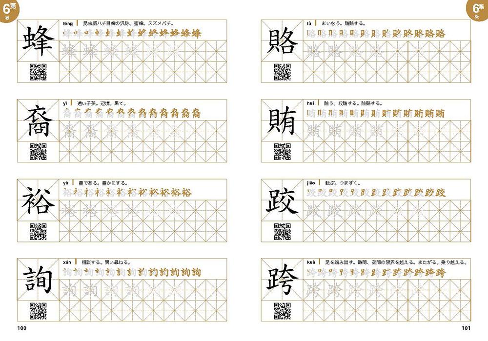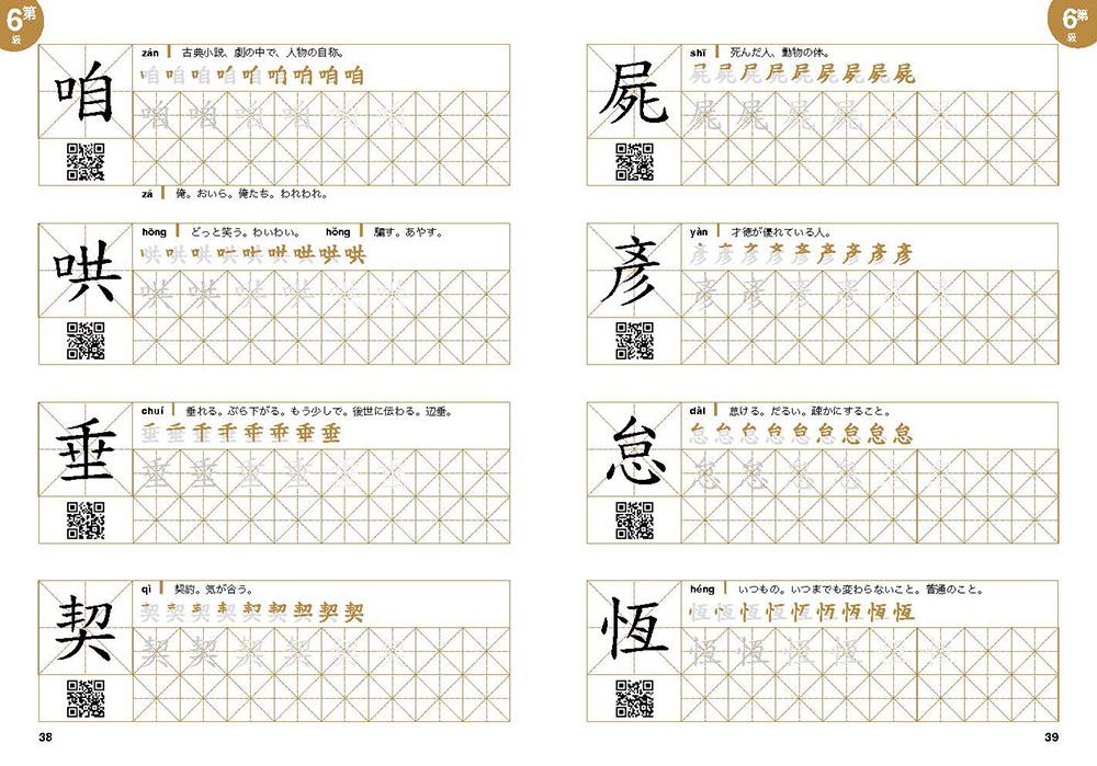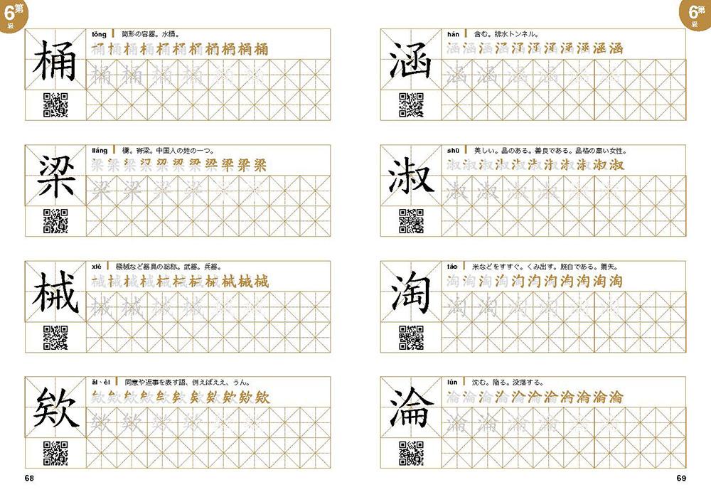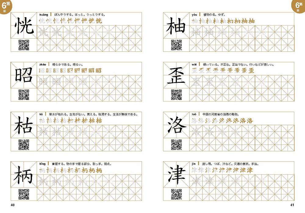 ‧漢語拼音+日文解釋──全書每個字均備有漢語拼音和完整字意日文解釋,以日語為母語的讀者,可以方便發出每個字的中文發音和了解該字的意思。