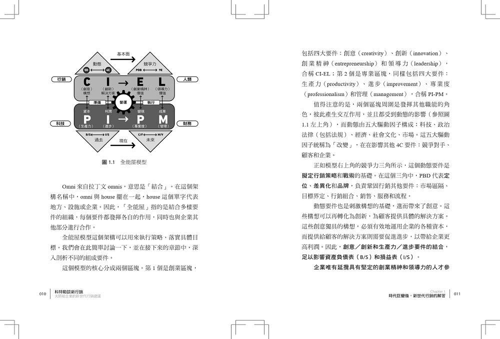 「科特勒與同事們再度推出力作。只要是行銷的相關面向,都看得到作者群的貢獻。過去既有全通路文獻著重討論如何運用眾多通路來行銷,但這本書帶讀者轉向了內部觀點,即2023年需要重新設計組織,才能適應全能屋模型的運作方式。他們也說明了組織每個部分必須環環相扣,才能在現今不斷變動的世界中持續運作。他們替時下企業界定了全新行銷架構,協助企業存續與茁壯。太棒了!」——大衛.雷伯斯坦(David J. Reibstein),賓州大學華頓商學院行銷教授