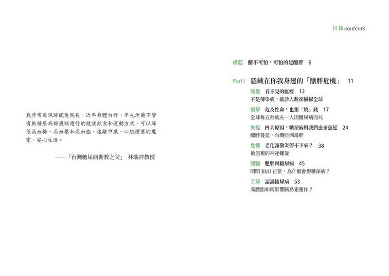 因此,我們把這本書定調在:糖尿病並非是失明、心臟病、洗腎和截肢的主因,控制不良才是。本書的 Part1 將探討糖尿病在全球散播失控的原因、對社經的衝擊,以及台灣受到高齡化和年輕化的雙面夾擊;其中糖尿病和肌少症如同跳探戈般的迴旋,影響了我們每個人老後的生命品質。