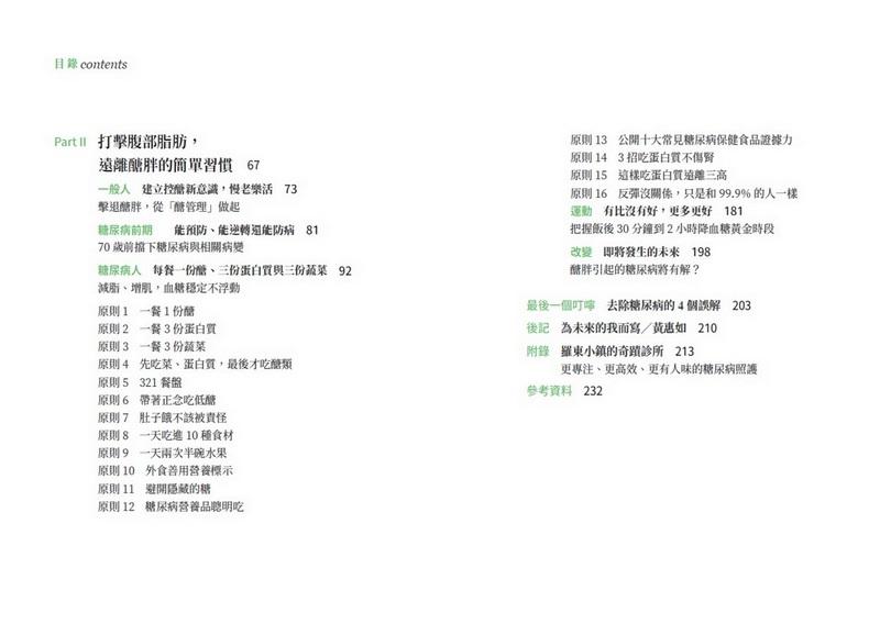 糖尿病人穩定控糖,不會因為飲食控制而變成肌少症;糖尿病前期可以逆轉,也就逆轉人生,從此更健康;而每個人用對的方法維持健康,可以吃美食、有活力地運動,並更快樂。