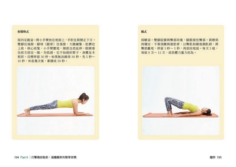 有氧、肌力、伸展該如何搭配?書中有基礎肌力運動示範,安全減脂增肌,打擊腹部脂肪,練出好體力與行動力。