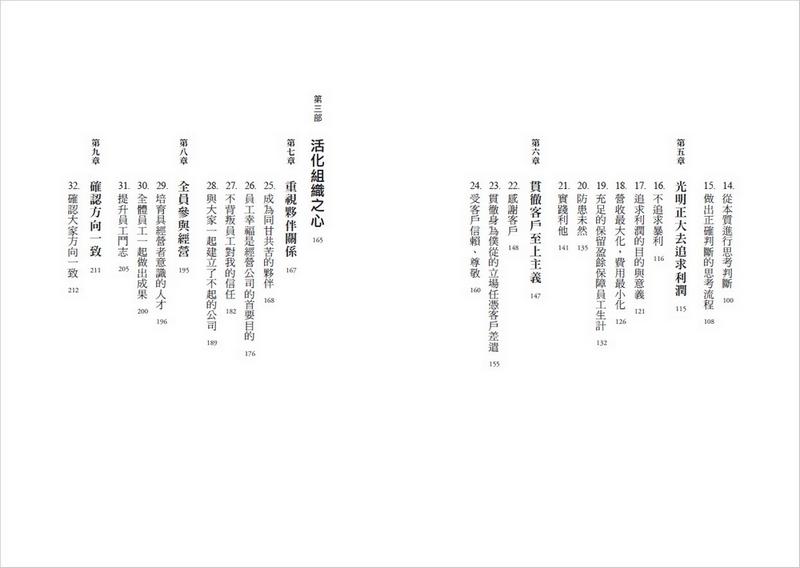 超過半世紀的時間,我一直站在經營最前線,天天不停地自問「企業應該是什麼?」、「經營應該如何做?」有人來向我請益時,我只會陳述我親自實踐過並確信的內容,像這樣由我的口述記錄整理而成的本書,正是我經營的「信念」。近來我聽聞許多經營者、經營幹部因為環境變化劇烈,而苦於經營之道,不知該如何掌舵前進。我十分期待肩負社會未來的經營者,能經由本書找到展開新活路的契機。