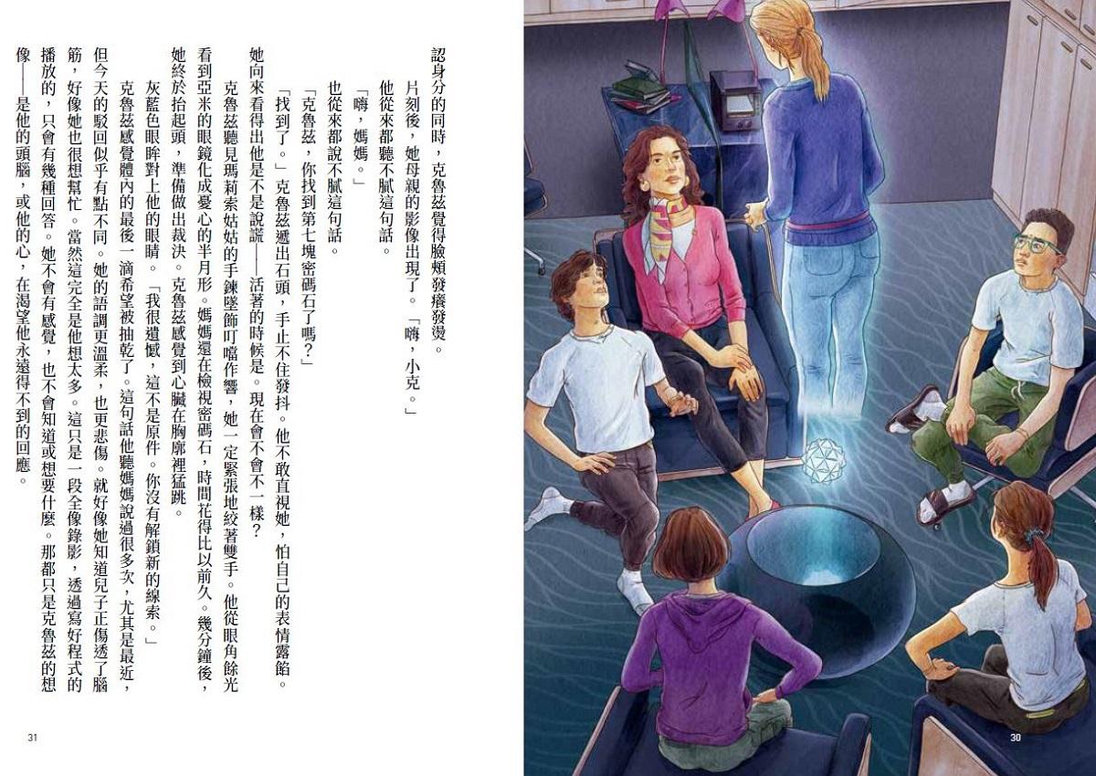 克魯茲每一次找到新的密碼石,會立刻拍兩張照片發送給他爸爸,然後把自己電腦裡的影像刪除,再用覆寫程式清除資料,之後就算到電腦的資源回收筒也不能復原影像。「慘了!」克魯茲才點開平板電腦上的檔案就哀聲說道,「我沒把照片覆蓋掉。我們離開西安的博物院之後坐上車……我打給布蘭迪絲告訴她最新情況,然後我──我一定是忘了……」