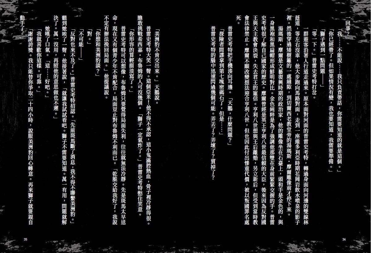 「什麼叫不一定?斑馬是范德威克博士,她已經不構成威脅了。」她反駁說。「剩下的除了美洲豹還有誰。」