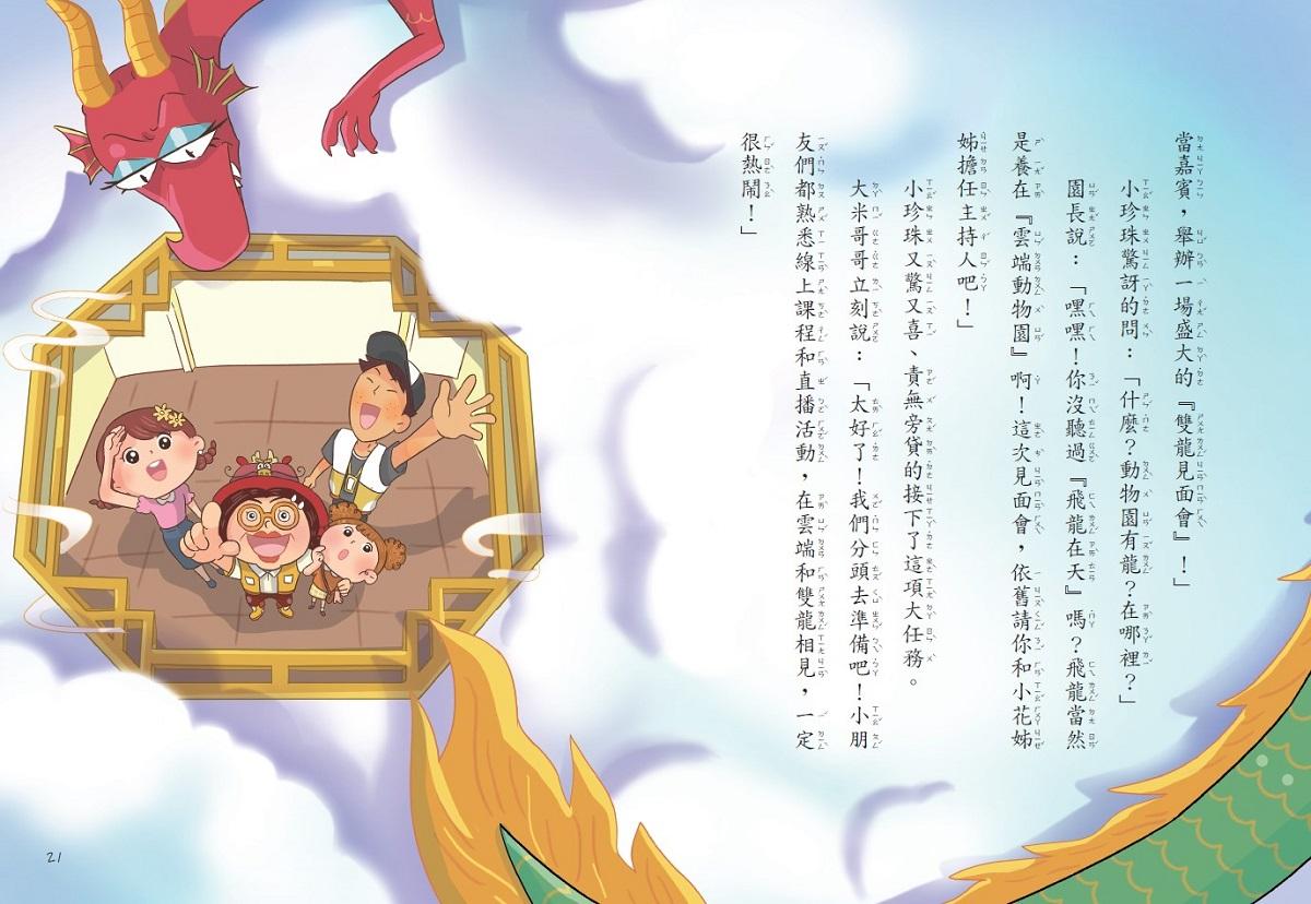 園長說:「嘿嘿!你沒聽過『飛龍在天』嗎?飛龍當然是養在『雲端動物園』啊!這次見面會,依舊請你和小花姊姊擔任主持人吧!」