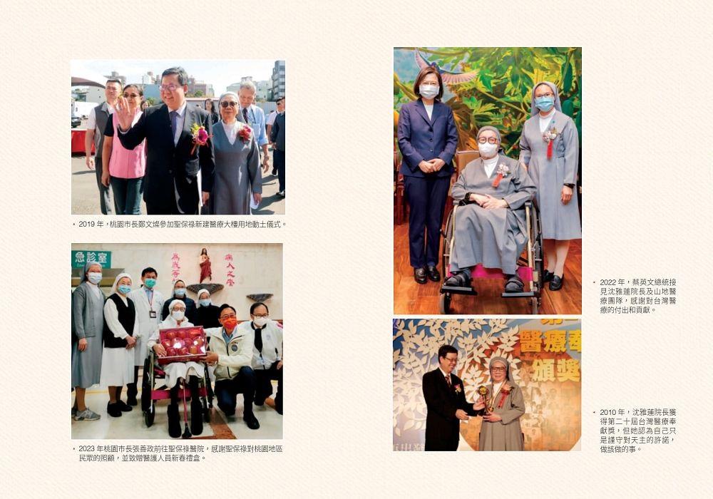 感謝天主的護佑,回首1960年三位修女從香港來到陌生的台灣,在人生地不熟的桃園,克服飲食、語言及文化差異,融入當地生活,1961設立「保祿診所」開啟醫療服務新頁。修女的關懷與無私奉獻,聖保祿醫院從無到1965年成立,首任院長馬玉芳修女經歷興建醫院法規、土地問題、尋覓醫護人才等艱難挑戰,修女親力親為,默默為主做工,成了桃園人口中「外國醫院」,女性生產首選醫院。瘦弱的馬玉芳修女打破醫院院長是醫師的傳統,展現女性溫柔、堅忍不拔的韌性精神,榮獲第八屆醫療奉獻獎肯定,當時新聞媒體爭相報導,讓國人注意到聖保祿醫院存在,瞬間打開醫院知名度。