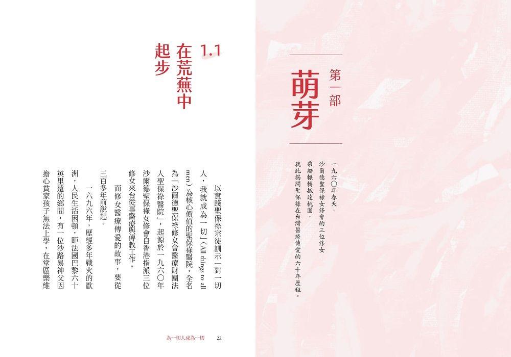 從一家只有幾坪大的小診所開始至今,聖保祿一路走來挑戰不斷,但在現任院長沈雅蓮修女的帶領下,全體員工目標一致、力拼轉型,成功走出自己的路,他們從未忘記「為一切人成為一切」的醫療傳愛任務,堅持風雨無阻到偏鄉為居民看診、照顧每一位求診的遊民、幫助移工完成最後心願、支持貧困有需要的人,也為重病失能的人提供貼心居家照護……。