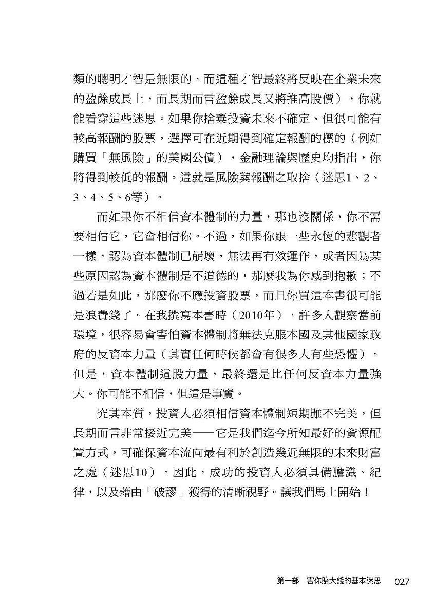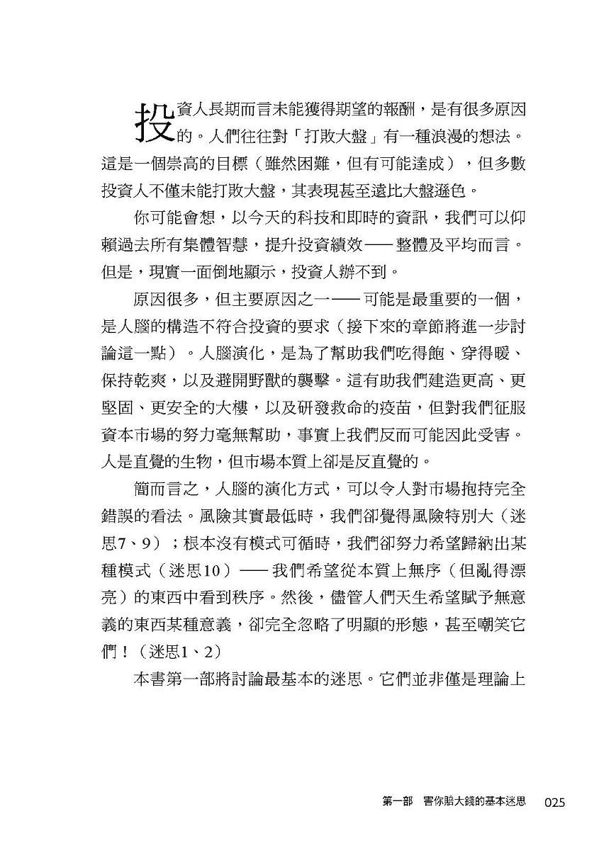 對於想要破除自身投資迷思的朋友,這本書,是不可或缺的讀物。