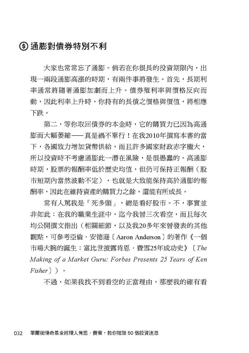 《華爾街傳奇基金經理人肯恩.費雪,教你破除50個投資迷思》一書列出常見的投資迷思與破解之道,對提升投資能力來說,非常有幫助。
