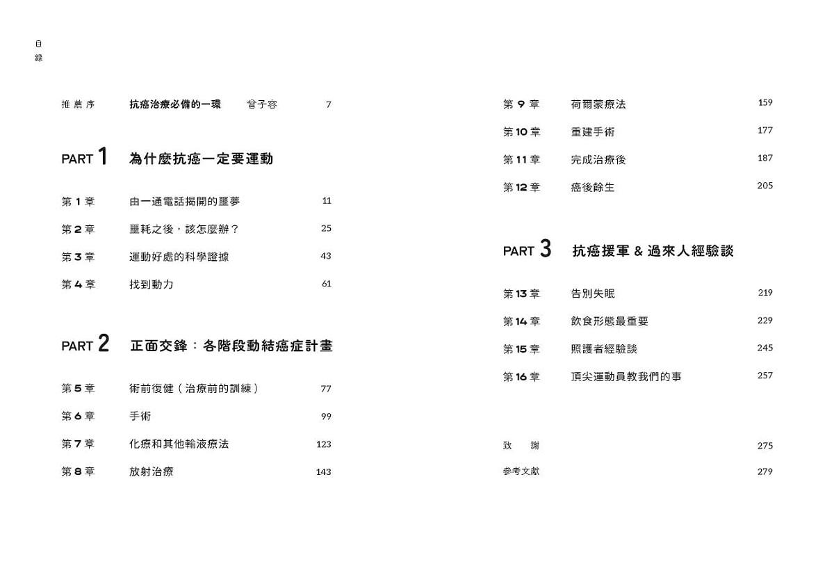 不僅談運動的重要性,更從多面性的角度來談癌症的照護,內容完整豐富、中立,容易了解,很期待這本書能提升患者的生活品質。──米娜(「米娜哈哈記事本」粉專版主)