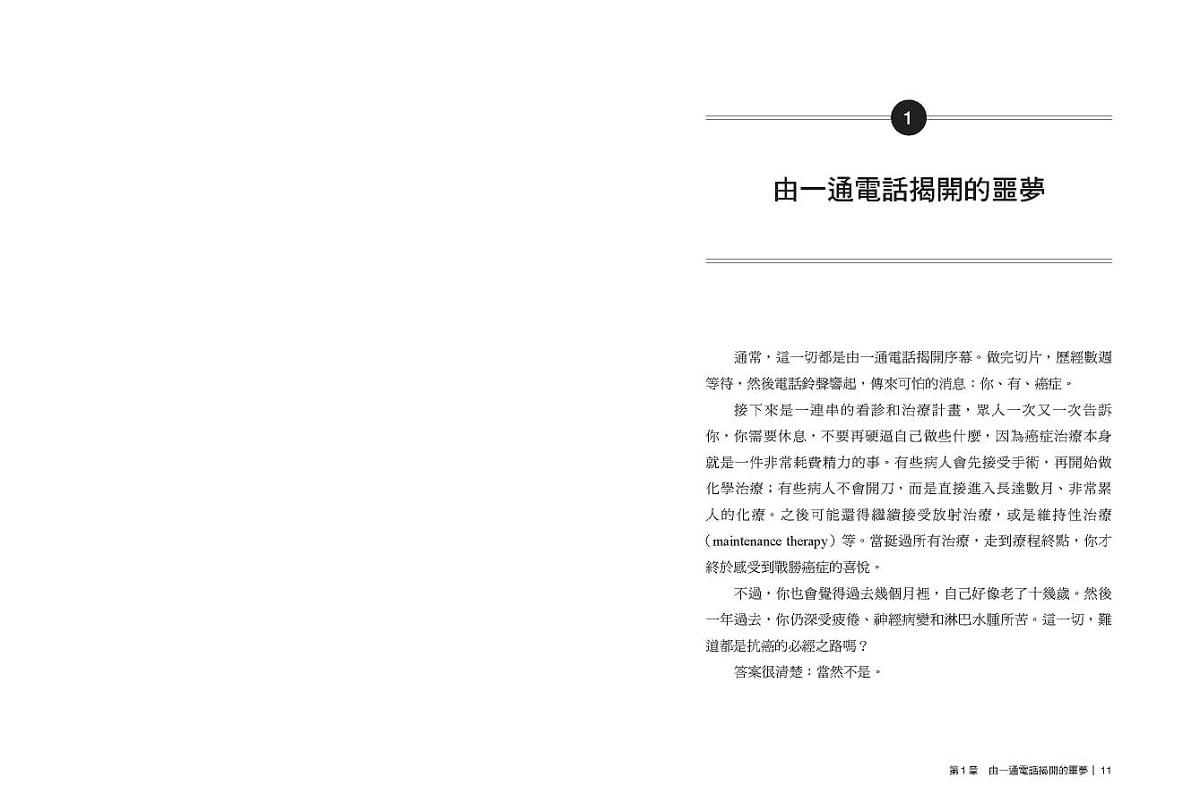 醫生要我們一個月後回來,為莎拉的鼻子安排開刀,就這樣至於等待開刀的那四週可以做些什麼,好讓莎拉的手術能有最好的成果,醫生隻字未提。這種情況並不罕見,但開始治療前盡可能把身體調整到最佳體能狀態,其實是提高抗癌勝率的好策略。你可能也想過該怎麼做,本書就是要教你如何做到。