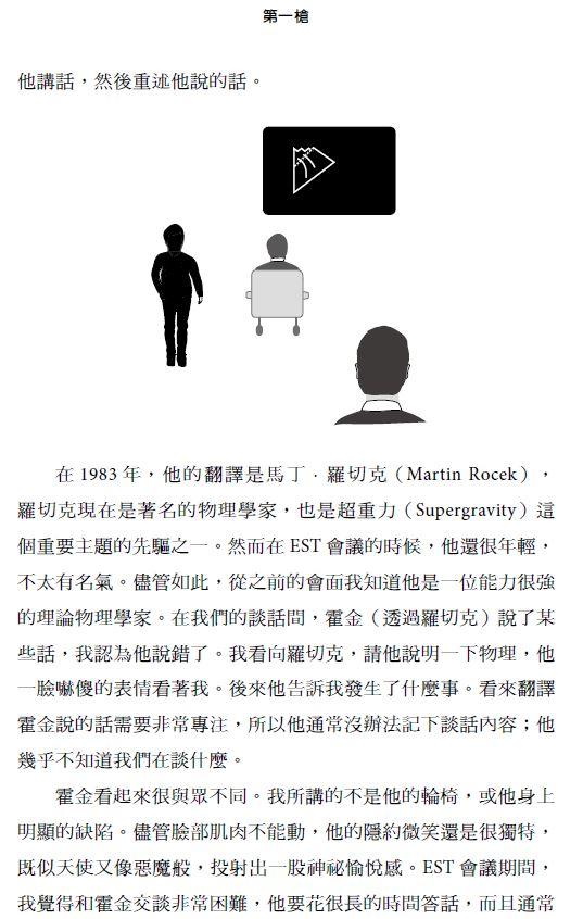 瑟斯坎承襲了這個科普寫作的優良傳統,寫過幾本可讀性極高的科普書,但其中以這本由創造歴史的本人來親自回顧黑洞戰爭的歷史,以生動、淺顯、幽默的筆法娓娓道來,可讀性極高。