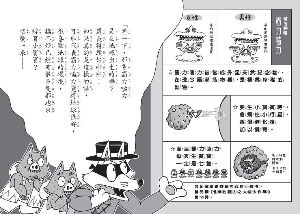 小編的大發現:「霸力嗑力」在第60集中曾經出現過,牠們一次可以生7個小霸力嗑力,可是小編細數第60集的封底,不管怎麼找都只看到6隻 (如果你手邊有書,請一起來找一找)。看來消失的第7隻,在此時已偷偷登上「新世代‧福氣戰士二號機」。作者原裕也在此刻悄悄埋下伏筆,構思好精采的第62集… … 。