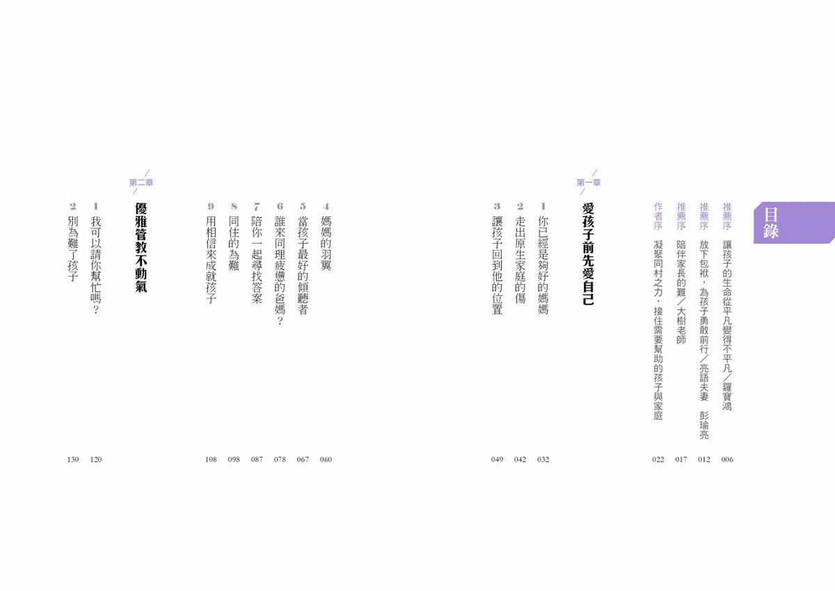 期待這本書,也可以陪伴讀者,找到覺察,找到資源,面對關關難過關關過的教養挑戰!