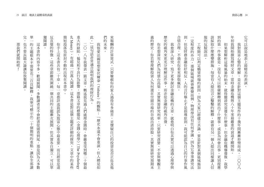 本書的前提是,「善於理財」與「有多聰明」幾乎毫無關係,不過卻和「行為處事」大有關係。行為難以教化,即使是聰明絕頂的天才亦然。