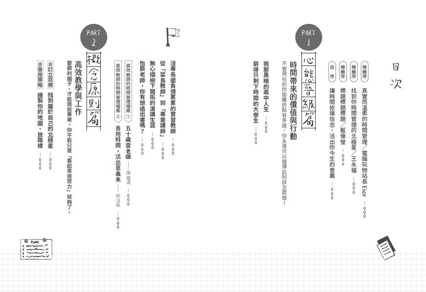 2.作者親自訪問7位教師的生命故事與時間管理心法,更貼近大多數真實人生的時間管理方法。