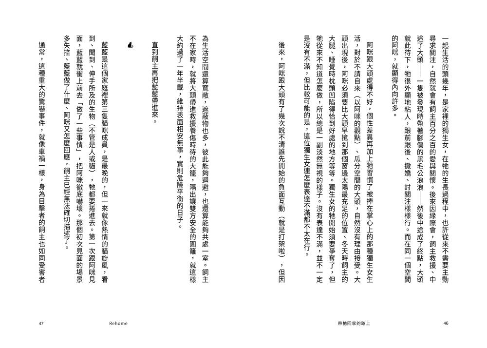 這不是另一本傳授行為訓練的工具書,也不是要用二十招教你搞定毛小孩的困擾行為,《帶牠回家的路上》,像是講述親子關係的故事集,而故事的其中一方換成了不講人話的狗貓,這就讓事情變得有趣多了!