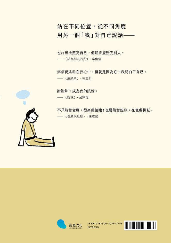 我想,我們都需要如此深刻的自我對話,有時甚至要走出自己,站在不同的位置,從不同角度,用另一個「我」的身分,跟自己說話。