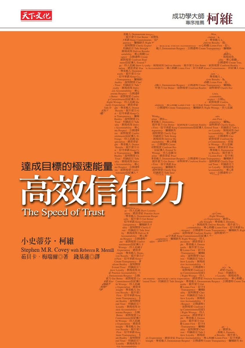速度,也是所有的企業在激烈的全球競爭中所要求的。研發新產品的速度要快,進入市場要快,對變動的反應要快,連人才的培育都要快。快!快!快!要快,別忘了最根本的信任,那才是快與慢的決定因素!而把信任與速度作連結的,柯維應是第一人。