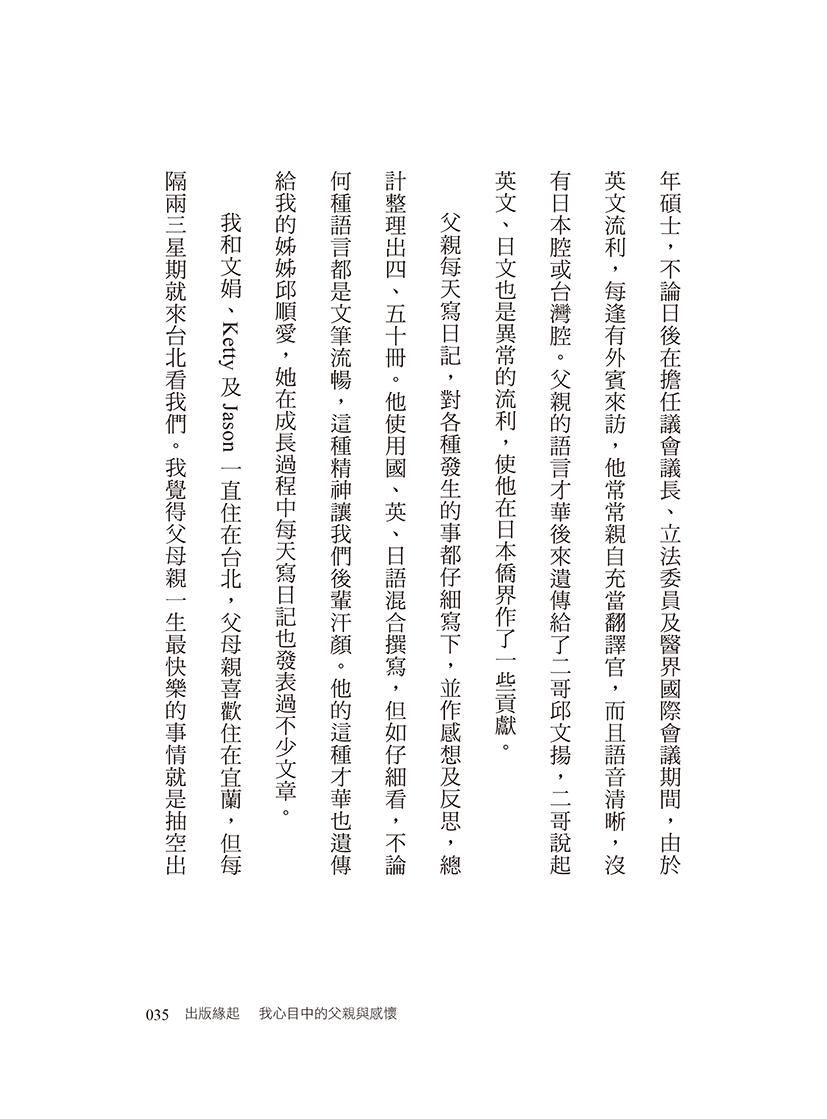 出版緣起 我心目中的父親與感懷 /邱文達