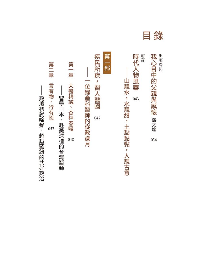 ◆第一部 疾民所疾,醫人醫國—一位婦產科醫師的從政歲月