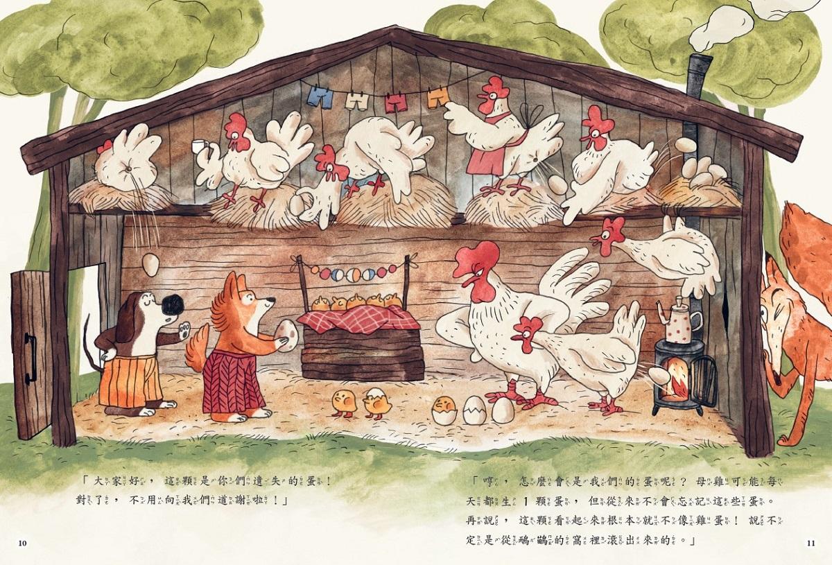 「 哼,怎麼會是我們的蛋呢?母雞可能每天都生1顆蛋,但從來不會忘記這些蛋。再說,這顆看起來根本就不像雞蛋!說不定是從鴯鶓的窩裡滾出來的。」