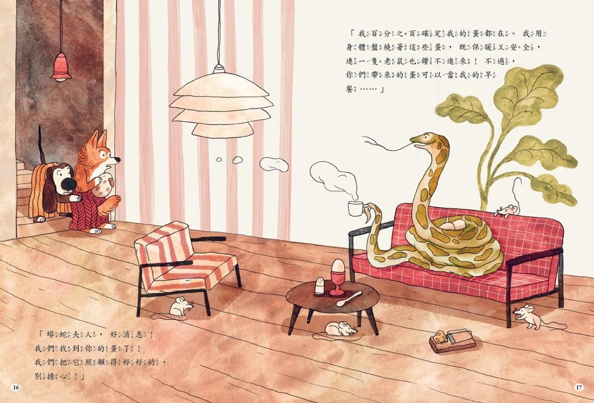 在偵探狗波波與皮皮的破案故事之外,仔細觀察書中的插圖背景,會發現周圍還有許多讓人會心一笑的呆萌動物。試著在書中找找「覬覦母雞、小雞和雞蛋的狐狸」,還有什麼發展?故事中還藏有許多小祕密哦!