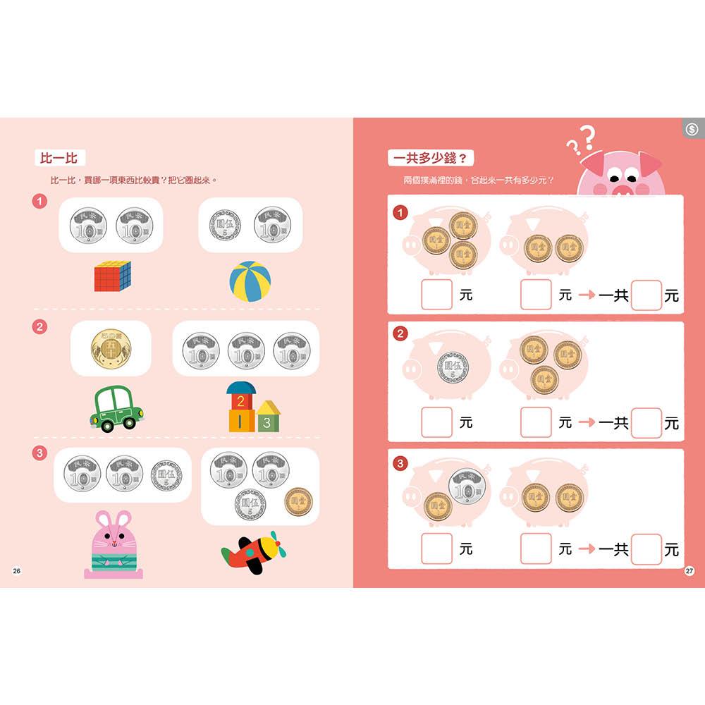 趣味練習書2本+滴答齒輪時鐘1個+零錢包1個+仿真錢幣1袋